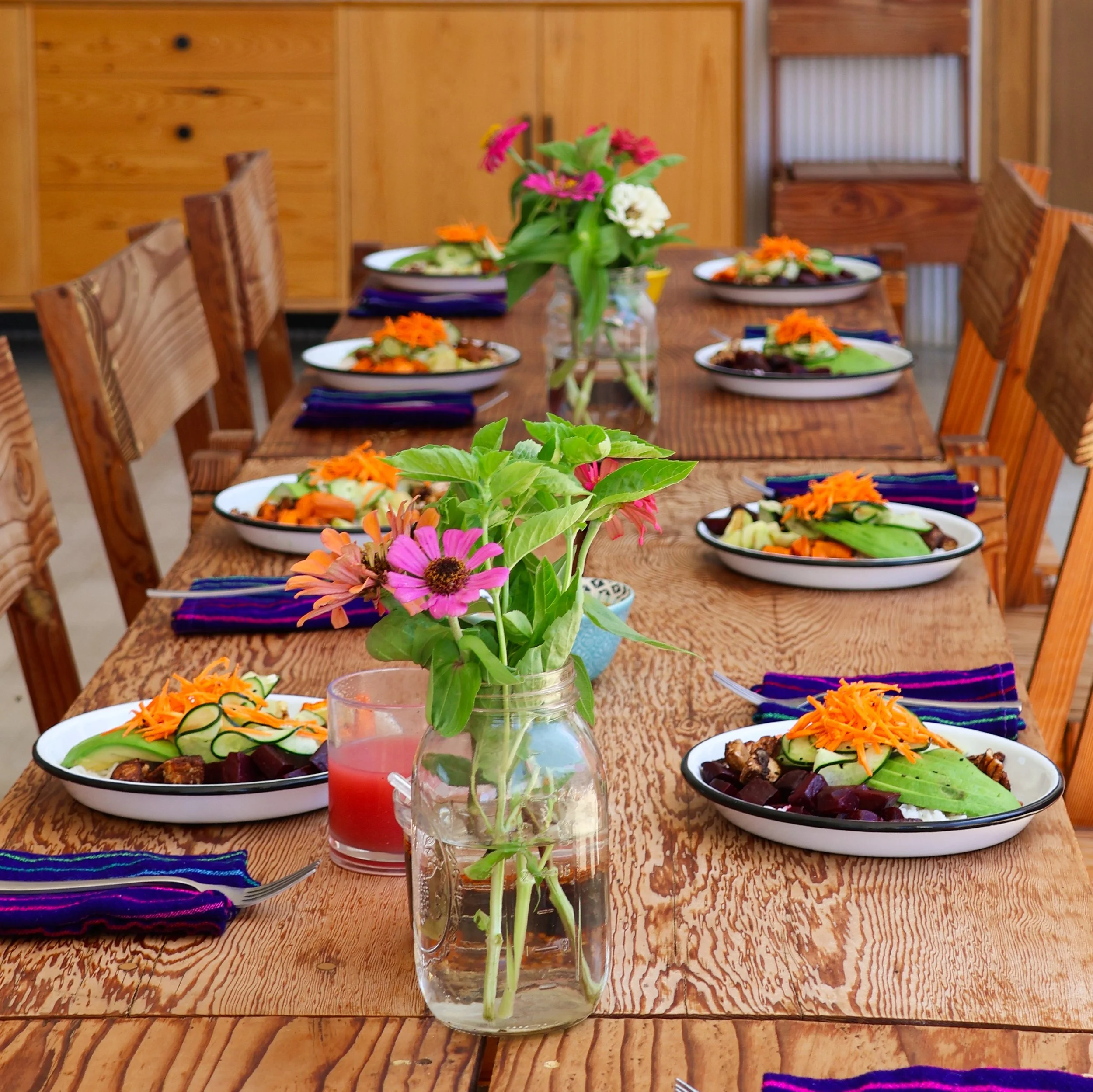 Daily meals - Continental breakfast, daily brunch, hearty afternoon snacks, and dinners, featuring organic and locally sourced ingredients (vegetarian, vegan, and gluten-free options available)